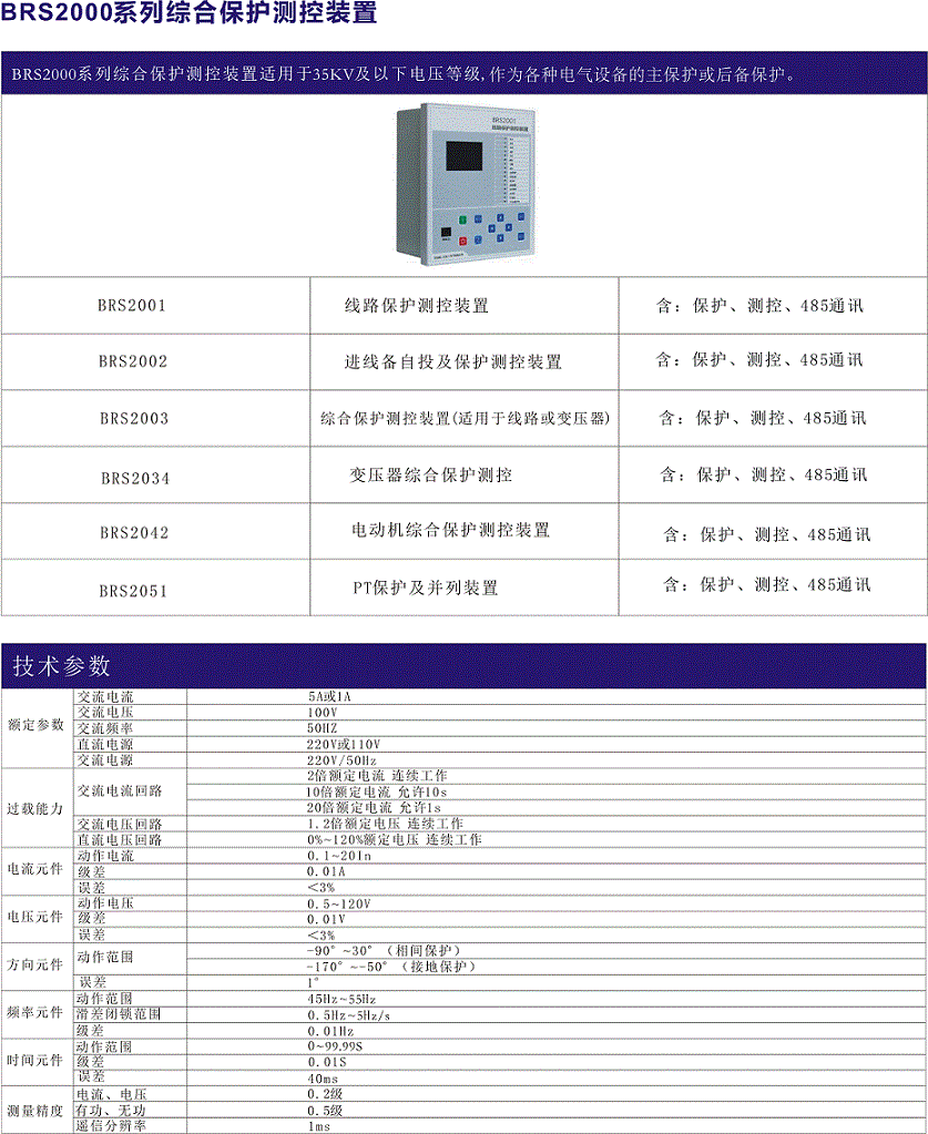 BRS2000系列微機(jī)保護(hù)測控裝置是在多年實踐應(yīng)用和運行經(jīng)驗的基礎(chǔ)上,吸取了國內(nèi)外微機(jī)保護(hù)裝置現(xiàn)有的先進(jìn)技術(shù),研制推出的新一代微機(jī)保護(hù)測控裝置。廣泛適用于電力、水利、石油、化工等行業(yè)35KV及以下電壓等級系統(tǒng),作為各種電氣設(shè)備的主保護(hù)或后備保護(hù)。